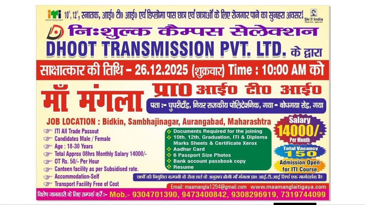 Dhoot Transmission Campus Placement 2025 | ITI Campus Placement | ITI Jobs | Fresher Jobs