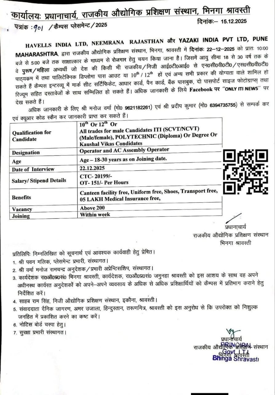 Campus Venue: राजकीय औद्योगिक प्रशिक्षण संस्थान भिनगा, श्रावस्ती