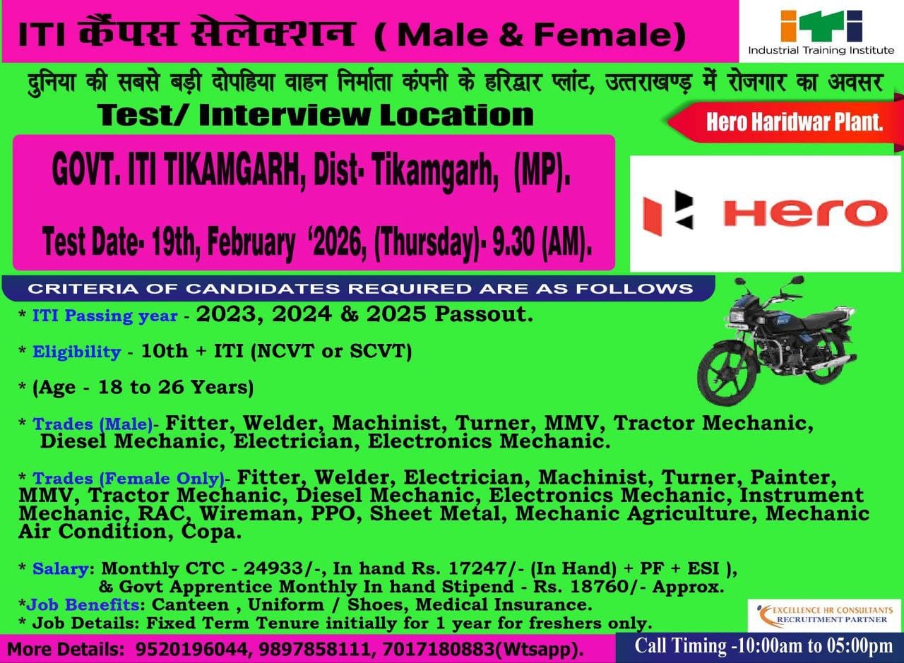 Hero MotoCorp Job Vacancies 2026 | Hero Company Job for Freshers | ITI Job 2026 | February 2026