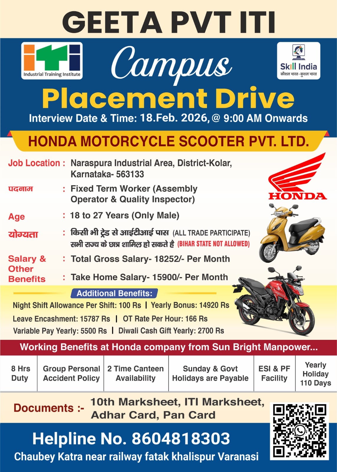 Interview Place: Geeta Pvt ITI, Chaubey Katra Near Railway Fatak Khalispur, Varanasi