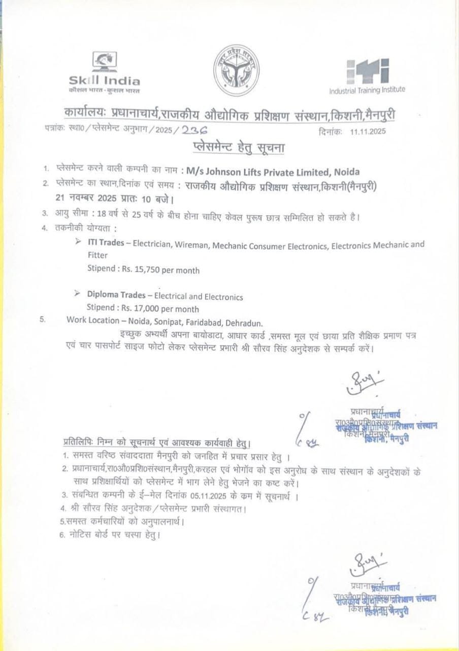 Campus Venue: राजकीय औद्योगिक प्रशिक्षण संस्थान, किशनी (मैनपुरी)