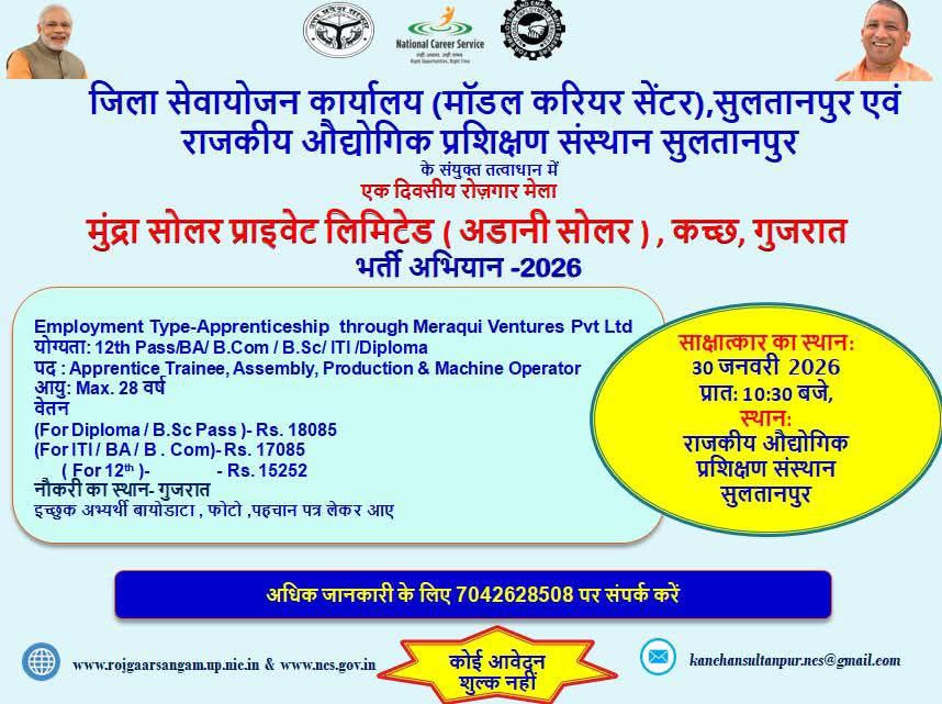Mundra Solar Recruitment 2026: Recruitment notification has been released by Mundra Solar Company. To get job in Mundra Solar Company, it is mandatory for the candidates to have ITI and Diploma Whichever candidate will be selected in this campus placement, that candidate will be given joining in Kutch, Gujarat. If you want to do the job then you can attend the interview by reaching the given interview venue with all the required original documents and their photocopies as per the criteria given below.