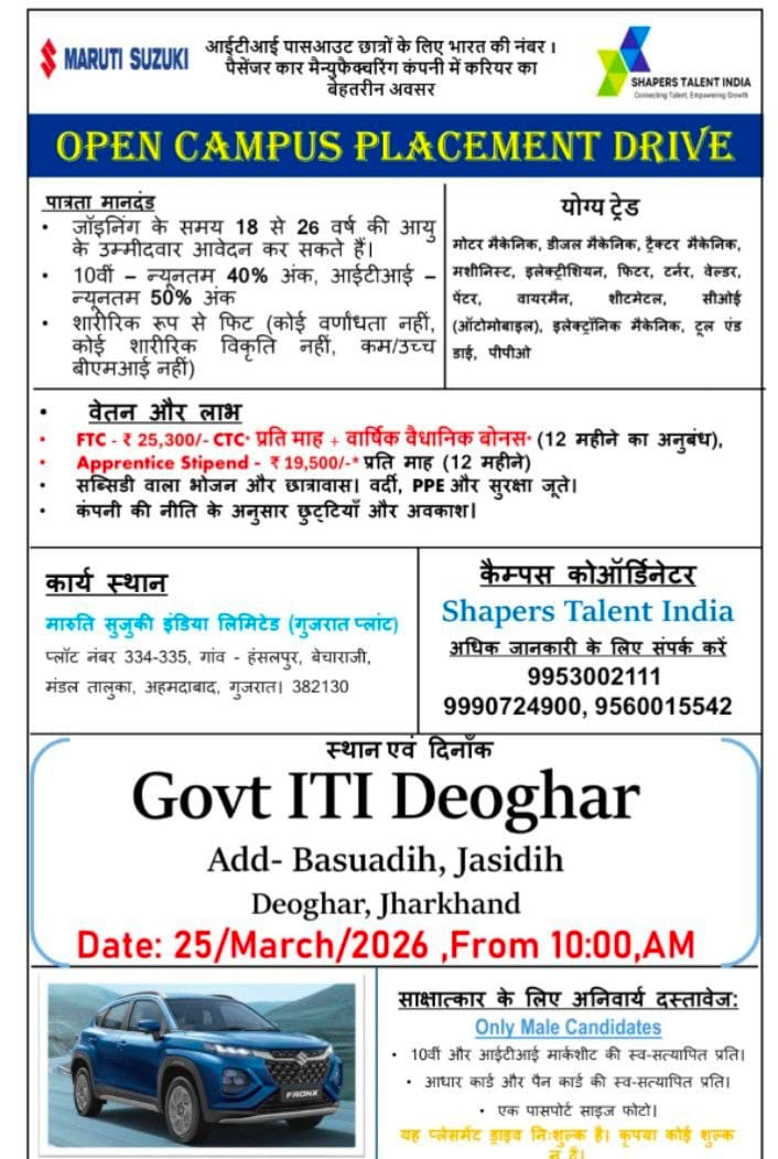 नोट : सुजुकी कम्पनी की सभी भर्तियाँ निःशुल्क होती हैं, ठगों से सावधान रहें