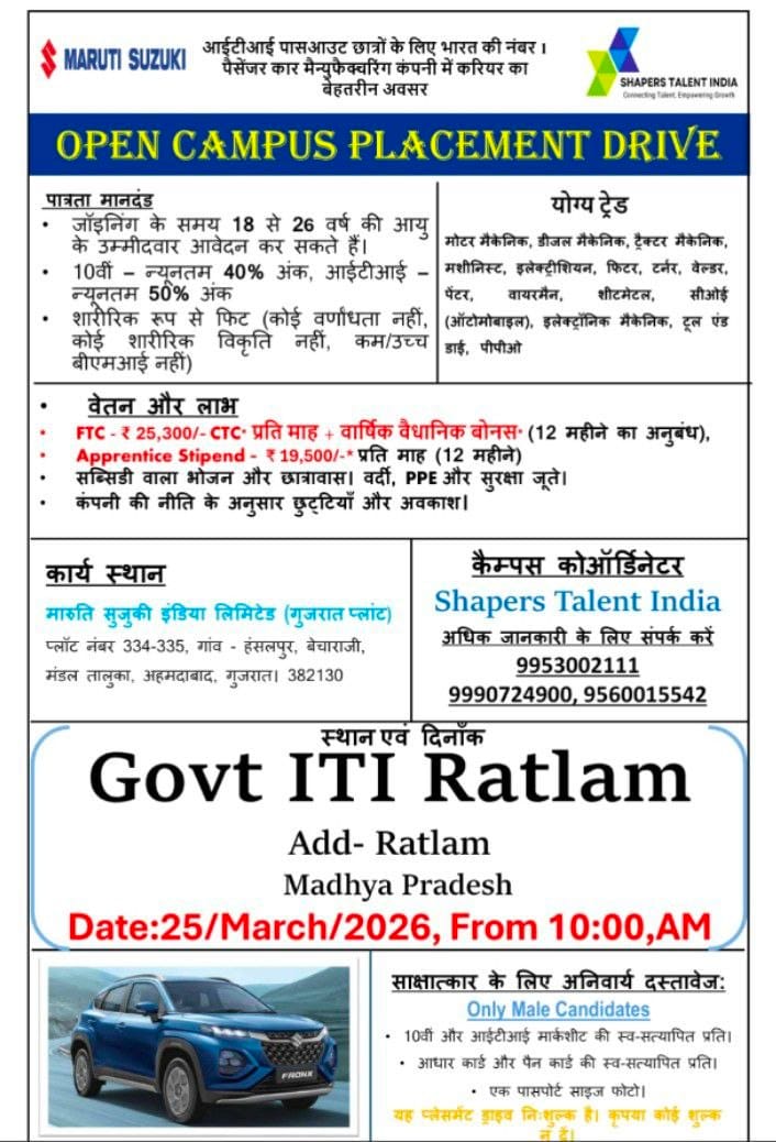 Campus Venue: Govt ITI Ratlam, Add – Ratlam, Madhya Pradesh