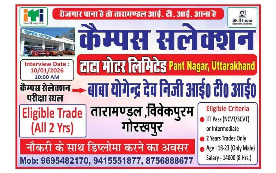 Campus Venue: बाबा योगेन्द्र देव निजी आईटीआई तरामण्डल, विवेकपुरम, गोरखपुर